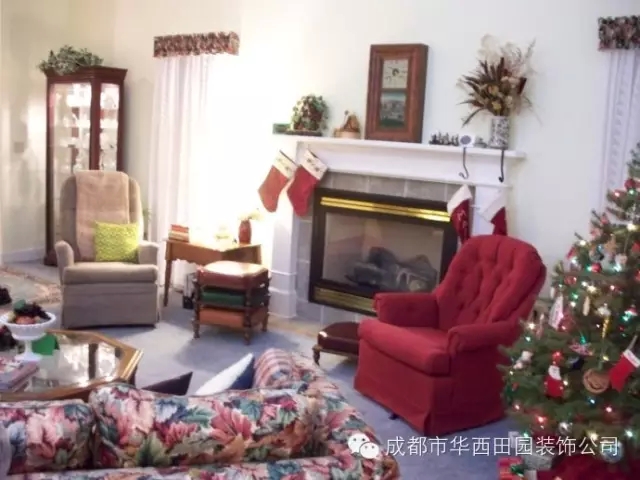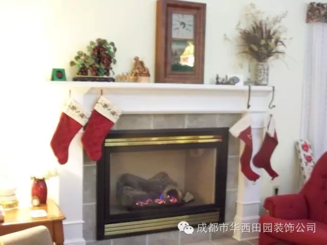 这是壁炉。外面白雪皑皑,里面壁炉的熊熊火焰让人感到无比温暖。壁炉上挂的那些红色的靴子,也是传统的圣诞装饰。一般是装礼物的。