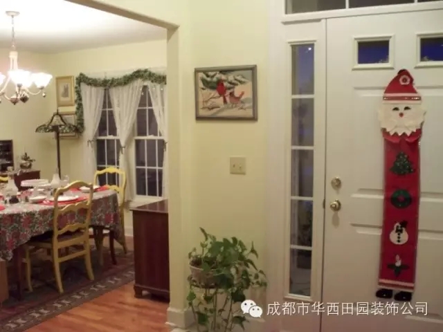 门背后的圣诞老人装饰。头下面的四个图案是圣诞最常用的