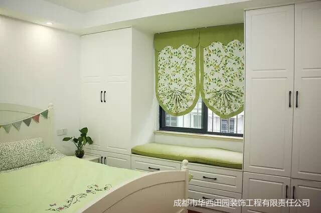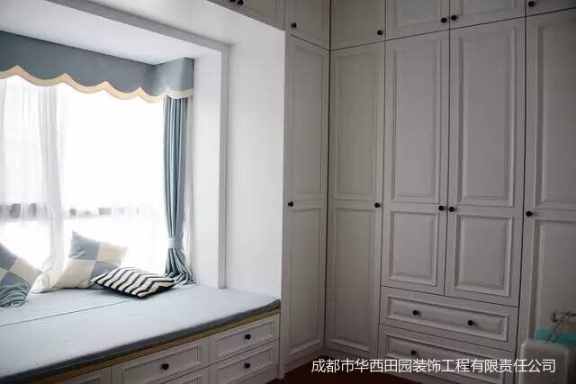 转角飘窗定制转角收纳抽屉,既不影响卧室采光,又为卧室增加了不少储物空间。