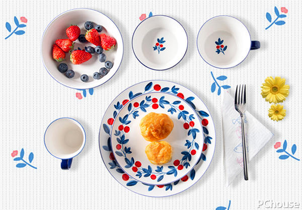 ▼美好的一天从早餐开始,蓝红白配色经典又耐看,用这样的餐具吃饭,纯纯的田园风味,心情也是棒棒哒!