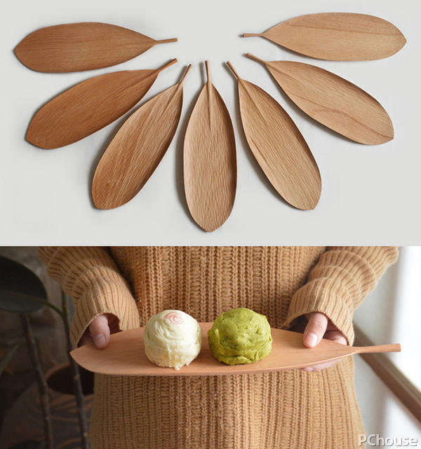 ▼这款原创木盘外形很特别, 灵感源于自然界中的玉兰叶,纯手工制作将它打造得姿态动人,盛放糕点,诗意满满!