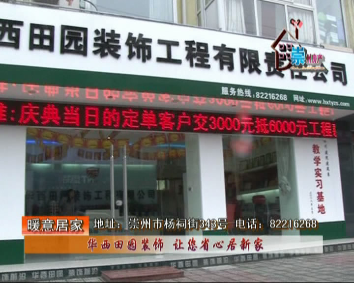 2010年12月16日,成都市华西田园装饰工程有限责任公司迎来十周年庆典之际,崇州电视台《崇州房产》栏目组对公司进行了专题报道。
