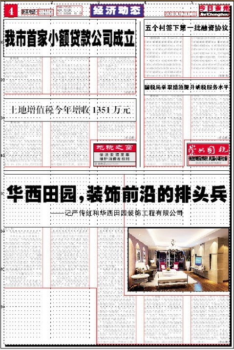 严传红说,将来的华西田园装饰公司,将以这份资质的认证为契机,不断扩大规模,除开家庭装饰业务外,还将拓展公共装饰业务,不断规范公司的操作流程,提高崇州装饰行业的美誉度。严传红还有一个更大的理想,就是把华西田园装饰公司办成装饰连锁公司,在其他成熟市场设立加盟分公司。目前,华西田园的第一个分公司已经在德阳选定了地址,并且装饰完毕,一旦注册通过,华西田园将走出崇州,唱响四川。 (续完) (李远鹏)