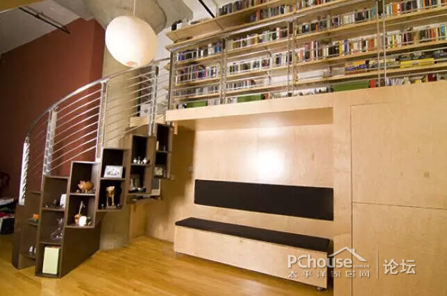 6、旋转楼梯可以做成储物盒,下面可以做个座椅